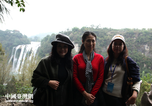进入黄果树瀑布景区后,台湾嘉宾一路不停地直奔瀑布,从听瀑到观瀑的小段路程似乎都觉得漫长,一直问,“怎么还没到?”听导游讲,目前已接近枯水时节,黄果树大瀑布和一个星期前来看,都不一样,此时有种“瘦”之美。嘉宾们纷纷约定下次涨水时节时再来看一次。“涨水时节,如蛟龙翻腾、浪花飞溅、水珠飞扬,直泻瀑布下的犀牛潭;枯水时节,瀑布犹如万缕银丝披挂、轻柔多姿、又是另一番风情。”