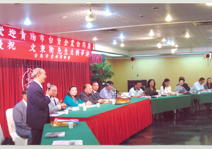 访问团与台湾统一企业集团公司总部的交流。11月20日,访问团在高雄市前往阿里山的途中,参观了统一企业集团公司总部。公司安排郭启瑞投资总监、姚明兴投资主办、苏姵榛投资主办热情接待。1967年7月1日,该公司成立,资本额3200万台币,员工82人。企业经营理念是“三好一公道”即产品品质好、信誉好、服务好、价格公道。生产矿泉水的标准高于国际标准,理念是:尊重生命、彼此关怀、乐观进取、亲近自然。曾有坏人用针管注射毒品进去,用以敲诈公司。董事长下令将该批次矿泉水全部销毁,员工曾痛心地提出自费购买也不行,公司损失2亿台币,但也赢得了良好的信誉。我们曾经考察过的集团下属梦时代购物广场,是台湾和东南亚地区最大的购物中心。2007年,集团营业额105亿美元,员工数达7万人。公司徽标由一只向西飞翔的鸟(象征企业理念中的“一公道”)、三个英文字母”p”变形(象征企业理念中的“三好”)和英文字母Uni-presidnt(象征企业走向国际)组成。特别难能可贵的是,那只鸟向西飞,东、南、西、北该可飞,为什么要向西飞呢?因为西边是中国大陆!公司成立时生产的第一包统一方便面,40多年过去了(虽然已有部分变成粉末),至今还陈列于公司产品橱窗里,她见证了统一企业的辉煌。“统一”商标的价值更是难以估量。