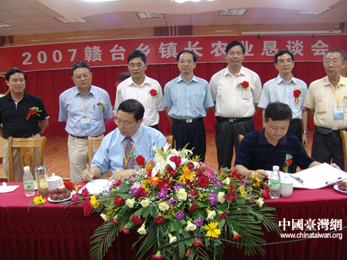 中国台湾网6月29日赣州消息 来自台湾中南部的乡镇长及民意代表一行,27日来到素有“中国脐橙之乡”的江西省信丰县进行考察。随后,举行了赣台乡镇长农业恳谈会,签署了资金约800万美元的农业合作协议和意向。