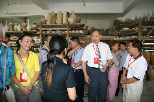中国台湾网8月30日景德镇消息 刚刚参加完2007赣台(南昌)经贸合作研讨会的台湾区电信工程同业公会前理事长、大吉电话材料有限公司董事长廖大吉和台北市台海两岸经贸文教交流协会荣誉理事长、百徽股份有限公司董事长杨祥传等35名台商客人,今天下午在景德镇台办领导等人陪同下,先后到当地知名陶瓷企业--景德镇陶瓷股份有限公司,景德镇雕塑瓷厂以及景德镇国际陶瓷文化交流中心参观考察。(黄建文)