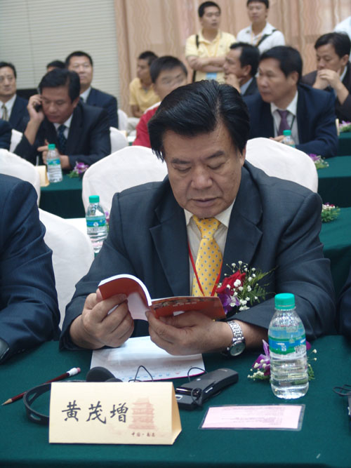 深圳侨商国际联合会秘书长黄茂增在观看推介资料 (摄影:邵填)