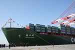 两岸海运直航最大吨级货柜轮抵达台湾高雄港