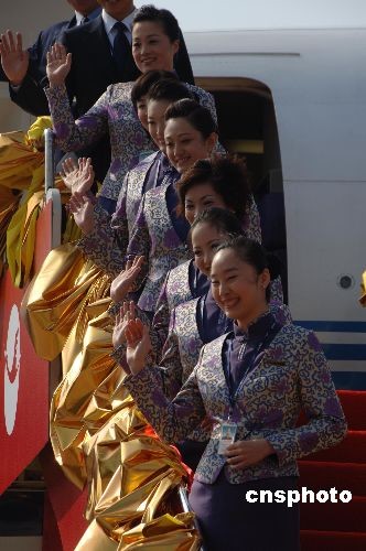 12月18日,担任福州至台北直航包机空中勤务的空姐,着新式服装上岗。 中新社发 郑祚声 摄