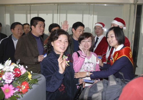 12月25日下午1时许乘客们满怀喜悦的心情准备搭乘汉台首航班机赴台 摄影:严越培