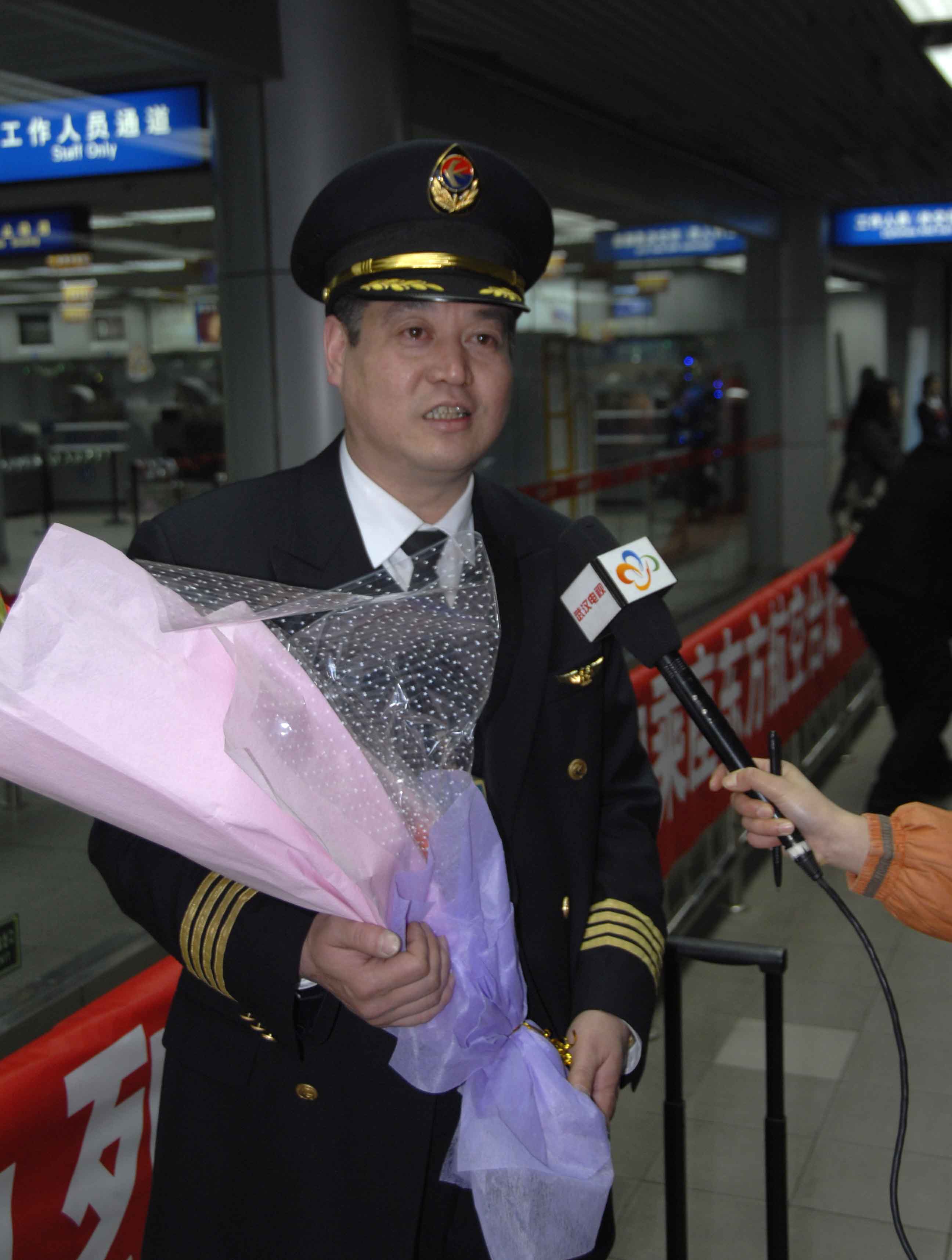 “直飞的感觉真好”担任汉台首航直飞的机长吴春洋接受记者采访 摄影:严越培