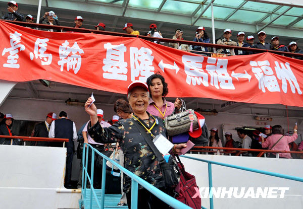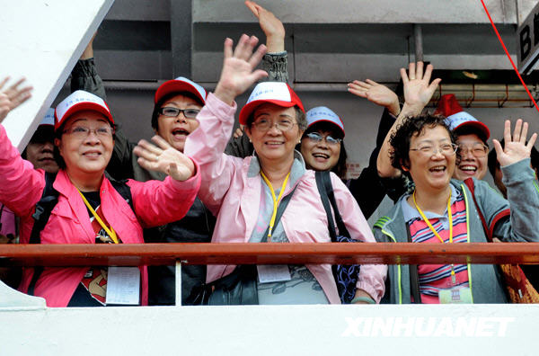 11月8日,抵达福州马尾港的台湾游客向前来迎接的福州乡亲招手致意。 新华社记者 张国俊 摄