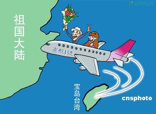 漫画:海峡两岸直航 中新社发 孙宝欣 摄