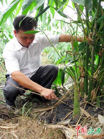 在分宜镇万亩麻绿笋材两用基地,台资企业万里绿邦科技公司的负责人夏军华拿着刚摘下的新鲜麻绿笋告诉记者,奥运会期间,公司已经向奥运会有关的餐饮商家提供了4万盒麻绿笋,并且因为残奥会的举办,还需要提供一批麻绿笋,但是现在断货了。