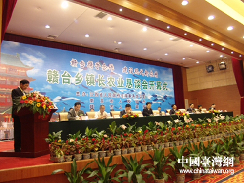 中国台湾网6月26日南昌消息 昨日,以“赣台携手合作,建设现代化新农村”为主题的2007赣台乡镇长农业恳谈会在南昌正式开幕。本次恳谈会由江西省台办、南昌市政府和赣州市政府共同主办。两地与会人员将参观特色农业园区和新农村建设点、座谈交流乡镇建设和农业开发经验,并制订长期合作交流协议。