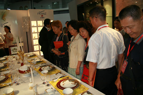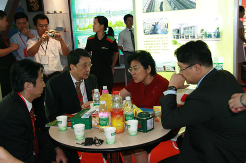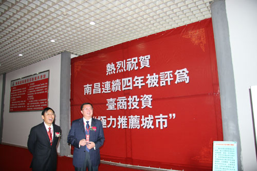 中国台湾网8月30日江西消息 2007赣台经贸研讨会于8月28日-9月2日在江西南昌举办。有千余台商及台湾商界人士与会。29日上午举行了“赣台经贸合作成果展”启动仪式。该图为台商与地方政府官员交流。(摄影:邵填)