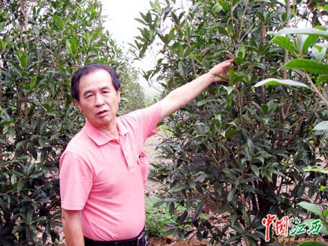 正是丹桂飘香时,江文龙几乎每天都在山上,生活在丹桂园里。(江西网 王建亮 摄)