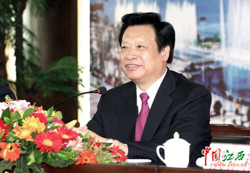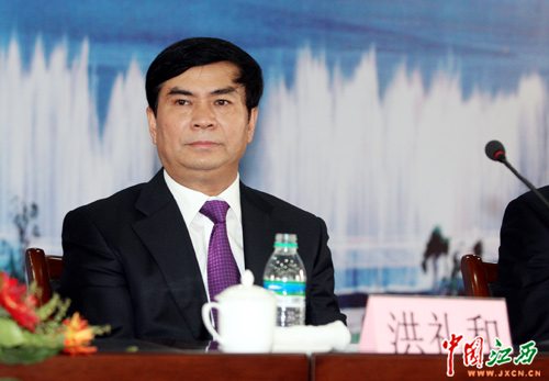 副省长洪礼和出席见面会并向到场的80多家媒体通报了研讨会的基本情况。(江西网记者 邓小勇 摄)