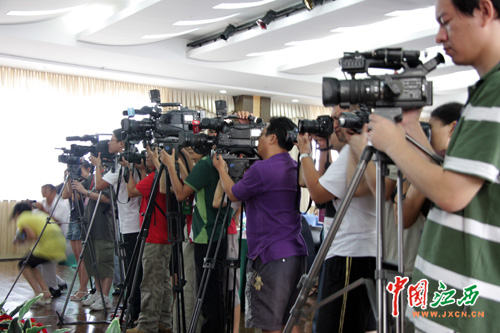 出席本次记者见面会的媒体有中央新闻媒体、港澳媒体、省内媒体共八十多家单位。(江西网记者 何淳勇 摄)