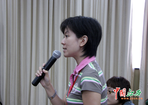 凤凰卫视记者在记者见面上提问。(江西网记者 何淳勇 摄) |