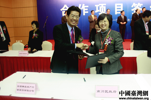 合作项目签约仪式上渝台双方代表现场签约。(中国台湾网 程轶文摄)