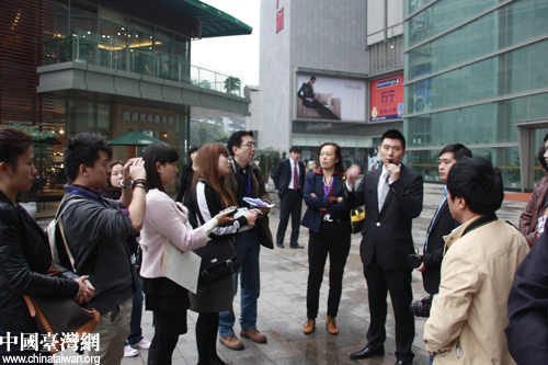 重庆日月光广场项目负责人为两岸媒体记者介绍情况(中国台湾网 程轶文摄)