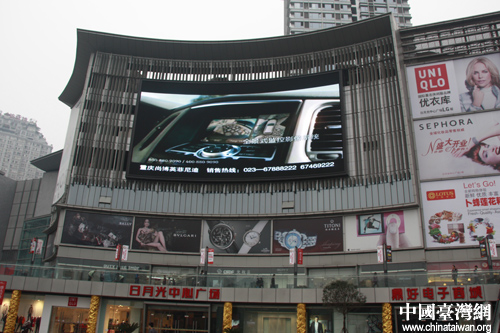 西南地区最大的LED屏幕(中国台湾网 程轶文摄)