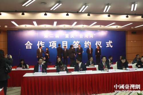 合作项目签约仪式上渝台双方代表现场签约。(中国台湾网 程轶文摄)