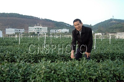 十二月二十六日,广西玉林市三山坡懿德兴农业有限公司总经理洪武雄先生向访客介绍有机茶种植经验。洪武雄先生投资广西玉林农业已十多年。他称,玉林海峡两岸农业合作实验区充满商机。目前三山坡公司已在玉林市仁东镇石地村建立了一百四十亩的农业产业基地和二百亩茶园。中新社发 蒋雪林 摄