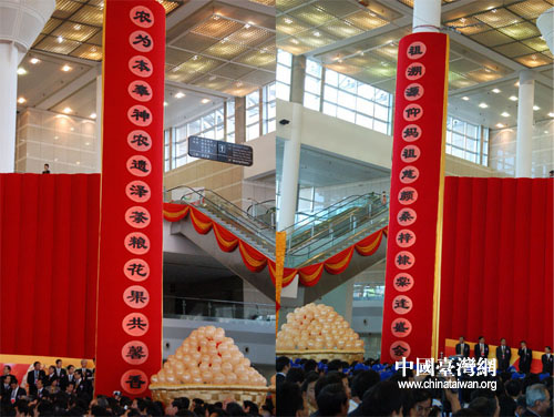 海峡两岸农业合作成果展览暨项目推介会今天(19日)上午在厦门开幕。整个会场融入中国的传统元素,包括中国传统的对联、灯笼,此外结合本次两岸农业合作论坛的主题,凸现农业特色(云鹏/摄影)
