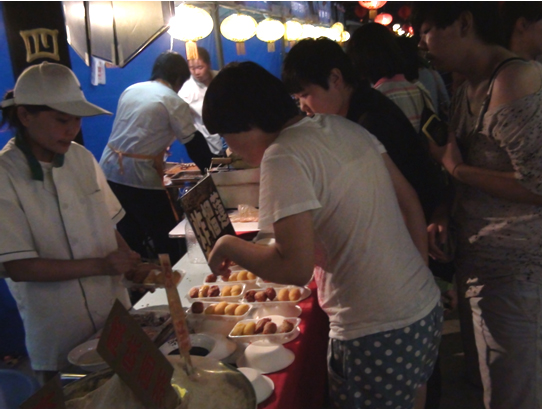 北京台湾街 “首届北京台湾美食文化节”活动一直持续火爆,每到夜幕来临,街灯闪亮时,北京台湾街就显得分外妖娆多姿。赶来体验台湾特色的朋友们通过品尝台湾小吃,真正体会到了“逛特色街区,购特色商品”“进特色街区,品经典美食”“游特色街区,赏古都文化”活动的乐趣。炸榴莲、台湾深坑臭豆腐、台湾芒果汁、乌梅汁、椰果沙冰等等美味引得来客口水连连……(记者 韩晓娟)