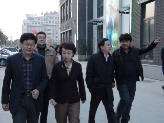 北京国新商业投资发展有限公司总经理田小彦和副总经理尹晓东进行全程陪同,两位公司高层领导正在和来到的相关市委领导进行交谈与讲解。