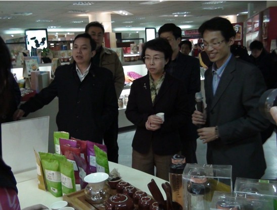 现场销售人员为副市长陈红沏了杯10年以上的石门硬枝红心铁观音。