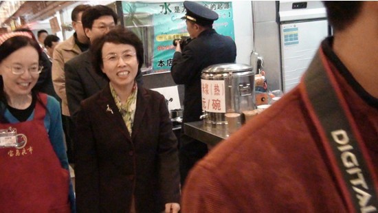 北京市副市长陈红来到了宝岛夜市美食街,观看了小吃工作人员的现场制作没事过程,非常的开心。