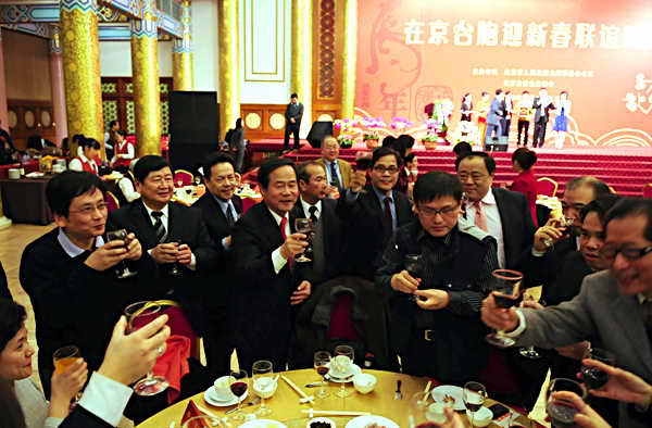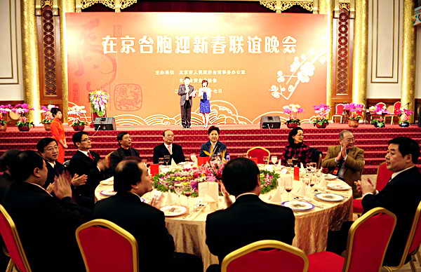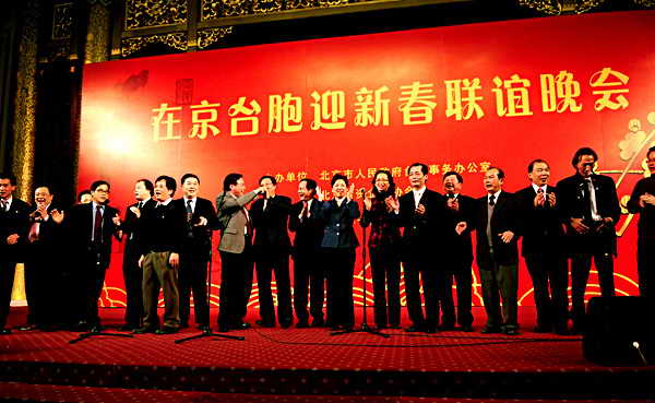 1月27日晚,由北京市台办、北京台协共同举办的“在京台胞迎新春联谊晚会”在北京饭店举行。中央及北京市有关委办局领导、民主党派团体代表、在京台商、台属、台生、台办系统工作人员、两岸媒体记者等500多人欢聚一堂,共迎新春佳节。