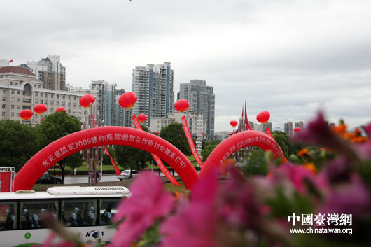 9月21上午,由国务院台办和江西省政府共同主办的“2009赣台经贸合作研讨会”在南昌开幕,千余台商与会。在赣台会主会场红谷滩会展中心周边,布景隆重而热烈。(中国台湾网 钟宝华 摄)