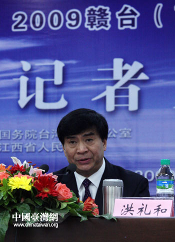 9月20日,2009赣台经贸合作研讨会在南昌召开记者见面会,江西省副省长洪礼和介绍本届赣台会的情况。(中国台湾网 钟宝华 摄)