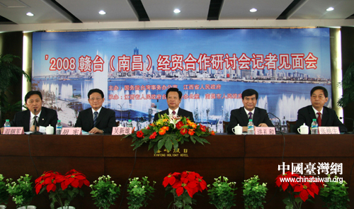 中国台湾网9月21日南昌消息 2008赣台经贸合作研讨会(以下简称“赣台会”)将于明天上午在南昌拉开帷幕。在今日“赣台会”的记者见面会上,江西省省长吴新雄和副省长洪礼和介绍了本届“赣台会”的基本情况,并就江西设立台资企业转移承接基地、成立江西台商创业园、赣台经贸合作的前景及扩大赣台两地的交流与合作等问题回答了记者提问。