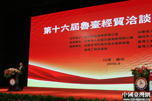 中共山东省委副书记、省长姜大明在致辞中表示,山东将紧紧抓住两岸经济合作框架协议签署的有利时机,继续大力推动鲁台两地在先进制造业、高新技术产业、节能环保产业、现代服务业和现代农业等重点区域的合作,积极贯彻中央惠及台湾同胞的各项政策措施,改善投资环境,依法维护台湾同胞的正当权益,帮助台资企业转型升级,促进台资企业在山东的持续发展壮大,推动鲁台经济合作朝着更深层次延伸。
