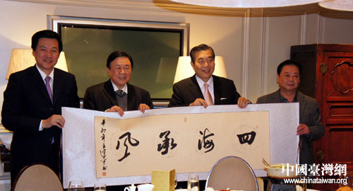 乔延春副主席(左二)与台北世界贸易中心王志刚董事长(右二)。图片来源:山东省台办
