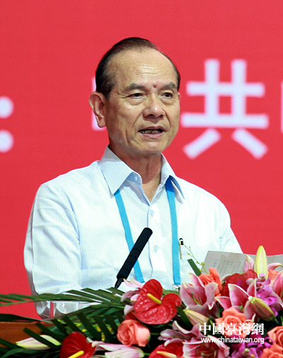 第六届两岸经贸文化论坛7月10日在广州开幕,中国国民党副主席林丰正致开幕词。(中国台湾网 钟宝华 摄)