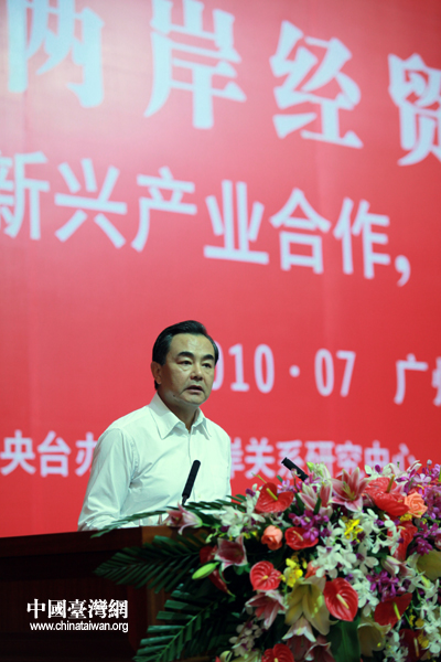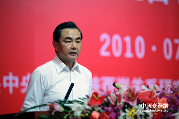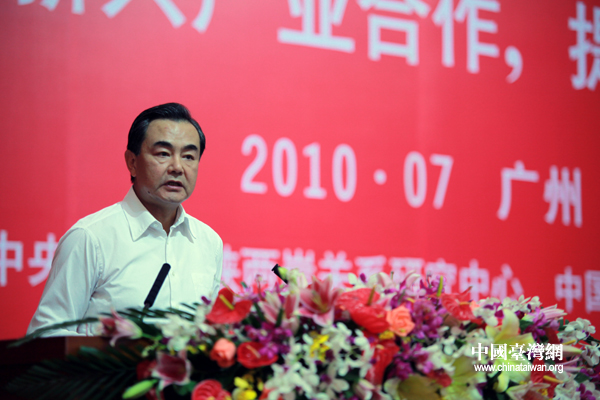 7月11日下午,第六届两岸经贸文化论坛在广州闭幕,中国国民党副主席蒋孝严和中共中央台办主任王毅共同主持闭幕式。图为中共中央台办主任王毅在闭幕式上对本届论坛进行小结。(中国台湾网 钟宝华 摄)