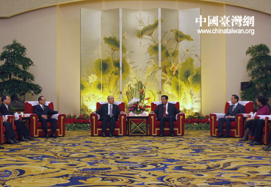 6日下午,中共中央政治局常委、全国政协主席贾庆林在成都会见中国国民党荣誉主席吴伯雄和出席第七届两岸经贸文化论坛的部分台湾代表。(中国台湾网 田云鹏 摄)