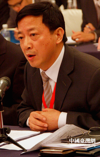 中共中央台办交流局局长程金中在“两岸文教合作与青年交流”的研讨中表示,“新形势下的两岸文化教育交流与合作理应向更宽领域、更大规模、更深层次迈进。”(中国台湾网 高斯斯 摄)
