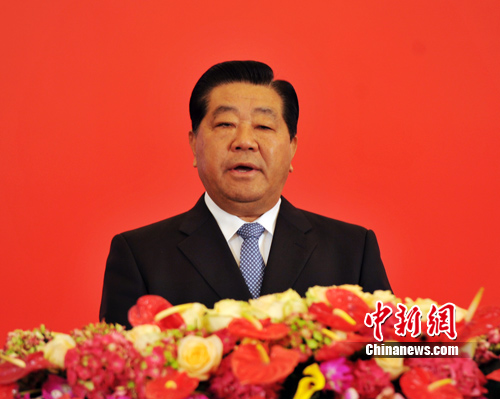 5月7日上午,第七届两岸经贸文化论坛在成都开幕,中共中央政治局常委、全国政协主席贾庆林出席开幕式并致辞。 中新网发 刘忠俊 摄