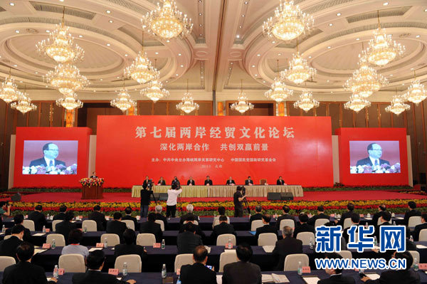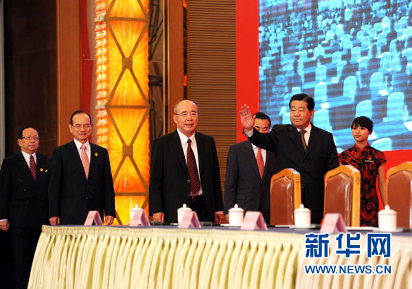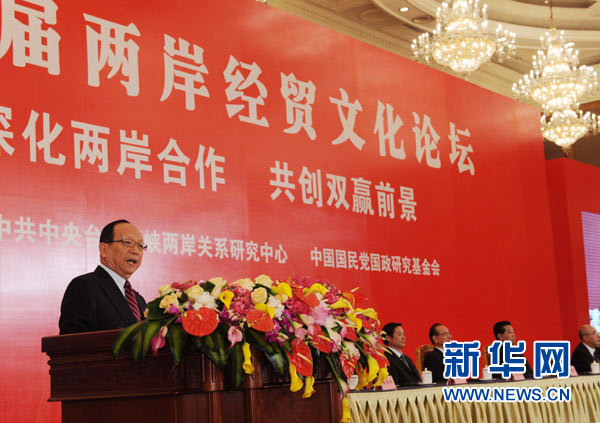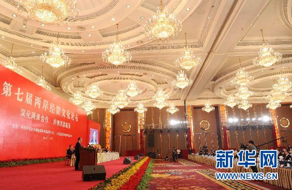 5月8日,第七届两岸经贸文化论坛在四川成都闭幕。中共中央政治局常委、全国政协主席贾庆林和中国国民党荣誉主席吴伯雄出席闭幕会。新华社记者 饶爱民 摄
