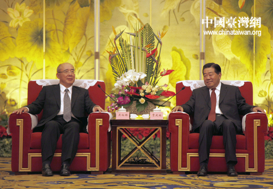 6日下午,中共中央政治局常委、全国政协主席贾庆林在成都会见中国国民党荣誉主席吴伯雄和出席第七届两岸经贸文化论坛的部分台湾代表。(中国台湾网 田云鹏 摄)