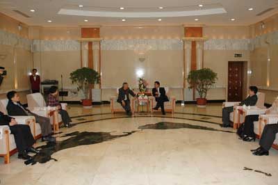 孙守璞副省长对焦先生一行的到来表示欢迎,对焦先生为两岸经贸关系发展做出的积极贡献表示赞赏,并向客人简要介绍了山东省经济社会发展情况和近年来鲁台交流合作的情况。他指出,山东是个经济大省、资源大省,基础设施完善,工业门类齐全,投资环境不断改善,鲁台之间经济互补性强,合作领域广泛。近年来,鲁台人员往来与经贸合作规模不断扩大,层次不断提高。去年,来山东的台湾同胞突破13万人次,全省合同利用台资突破30亿美元,实际利用台资突破20亿美元,均创历史新高,山东正逐渐成为台商投资新的聚集地。孙守璞副省长表示,欢迎焦先生来山东观光考察、投资兴业,为山东的经济社会发展建言献策,也希望焦先生多介绍台湾朋友来山东发展事业,山东各级政府将提供优良的服务,促进经贸交流与合作的发展。