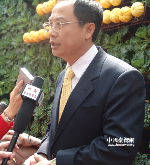 中国台湾网4月21日消息 第七届中国(寿光)国际蔬菜科技博览会昨天上午在山东省寿光市开幕。在此次菜博会上,首次为台湾地区设立了专门展区,这是海峡两岸两大民间农业组织——大陆海峡两岸农业交流协会与台湾省农会首度直接合作的结果。菜博会开幕式后,台湾省农会总干事张永成接受了媒体的采访。
