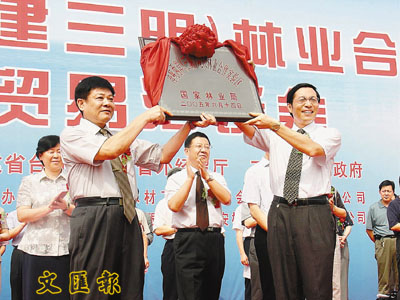 国家林业局授牌,海峡两岸现代林业合作试验区正式成立。文汇报记者武毅田 摄