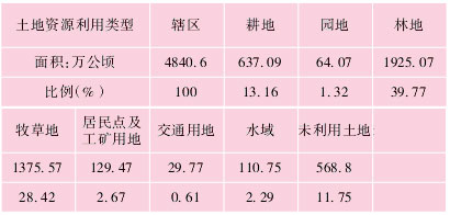 根据土地的自然、社会经济利用现状及其他因素划分,四川省土地资源的利用类型有8个一级利用类型(表1),45个二级利用类型和62个三级利用类型。除橡胶园以外,其他省的一、二级土地利用类型四川都有,在全国极富代表性。土地利用以林牧业为主,土地利用地域差异十分明显,林地和牧地集中分布于盆周山地和西部高山高原;耕地则集中分布于东部盆地和低山丘陵区,占全省耕地的85%以上,以坡耕地为主,耕地质量不高;园地集中分布于盆地丘陵和西南山地,占全省园地的70%以上;交通用地、居民点及工矿用地集中分布在经济较发达的平原区和丘陵区。
