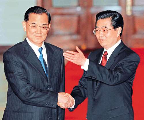 第二次“胡连会”16日在京上演,将成为两岸关系发展史上的又一大亮点。图为第一次“胡连会”。(资料图片)