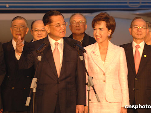 中国国民党荣誉主席连战一行于十七日下午五点五十五分抵达福州长乐机场,开始为期五天的“福建祖地行”行程。作者:郑祚声