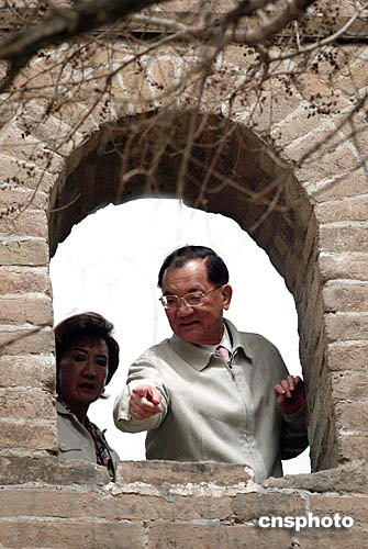 4月17日上午,连战夫妇登上八达岭长城北城烽火台。作者:盛佳鹏
