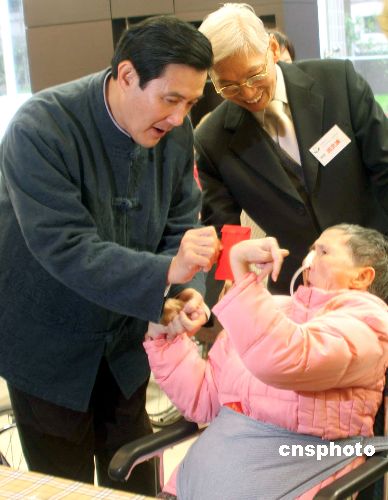 二月六日农历除夕,国民党的台湾领导人候选人马英九来到已有八十五年历史、老残无靠老人的“台北市私立爱爱院”,陪老人们共进早餐并给孤寡老人发红包。 中新社发 耿军 摄