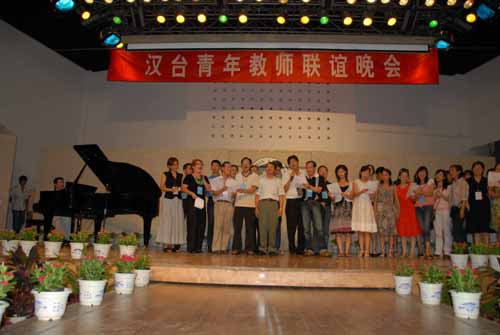 8月21日,海峡两岸·汉台青年教师教育交流参访团在武汉市江汉大学举行交流座谈会,两岸教师紧紧围绕“立足教书育人本职,弘扬中华传统文化”这一主题,根据自身教学实践谈体会,对照当前文化现状话得失,进行广泛交流讨论,会场气氛非常热烈。交流座谈后,在“两岸一家亲”联谊晚会上,两岸教师载歌载舞、联欢互动,掌声不断。(武汉市台办)